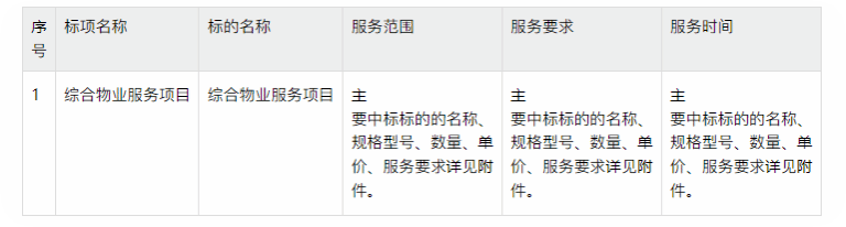 服务类主要的标的信息